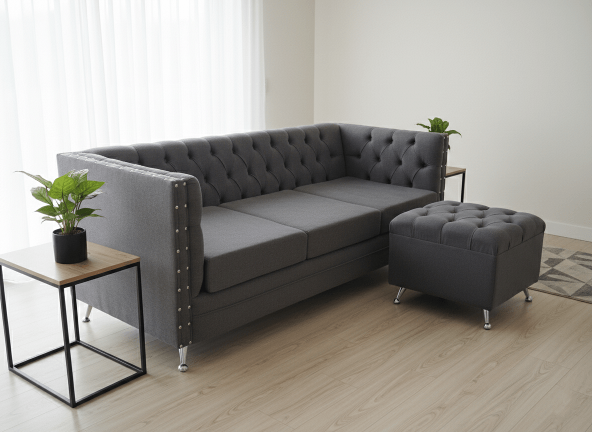 Eleve el nivel de su sala de estar con este sofisticado sofá de diseño contemporáneo, una pieza que fusiona la majestuosidad del estilo clásico con la funcionalidad moderna. Su estructura robusta y líneas definidas lo convierten en el protagonista indiscutible de cualquier ambiente, desde departamentos minimalistas hasta salones más tradicionales.